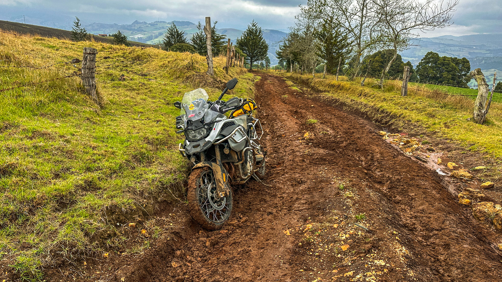 El cielo se oscureció rápido. No sé si fue el clima o si mis miedos empezaron a empañarme la vista. La lluvia comenzó a caer, esa lluvia colombiana que no avisa y lo transforma todo. De un camino off-road manejable, pasamos a una trampa de barro. El terreno se volvió resbaloso, traicionero, y los lugareños que trabajaban en la zona nos miraban como si estuviéramos locos. “¿Van a meterse por ahí con esas motos?”, decían sin decirlo, solo con la mirada.